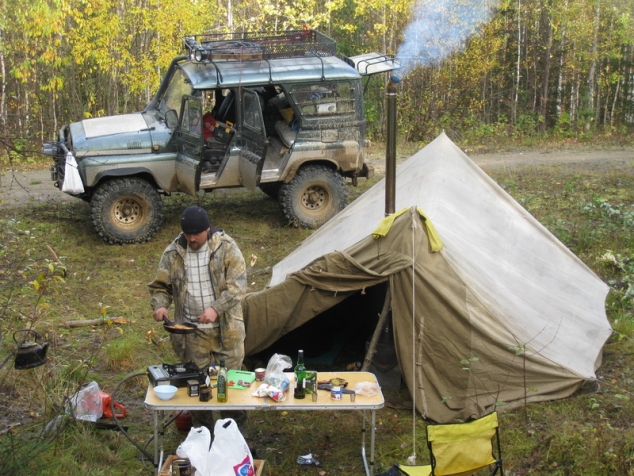 Сил ни физических, ни эмоциональных для победы над поломкой уже нет. Молча ставим лагерь, жарим мясо, пьем вискарь и очень сетуем, что не было времени для того чтобы хоть как-то протестировать автомобиль перед поездкой. С тяжелыми думами отправляемся спать, как не крути, а подвели мы друзей с продуктами и вообще, не ясно сможем ли мы продолжить путь. Утро следующего дня встретило солнышком и практически летним теплом, хотя всю ночь приходилось топить печку. Завтрак. Приступили к ревизии моста.