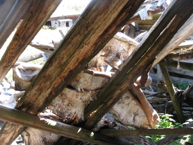 Утро следующего дня, здесь расходятся наши пути, ребята едут домой, ну а нам дальше на восток в сторону Главного Уральского Хребта. Однако торопиться уже не куда и есть время осмотреть деревеньку и находящуюся неподалеку заброшенную ИТК. Деревня со времени нашего последнего посещения немного изменилась в худшую сторону. У одних домов провалились крыши, у части других потихоньку выпиливаются стенки – на дрова. Однако деревенька не производит угнетающего впечатления, за несколькими домами приглядывают, изредка бывающие здесь рыбаки и охотники. А чарующий вид на Тулымский камень, Колва и впадающий в нее ручеек, бегущий прямо через деревню, создают веселую и живую атмосферу. Невольно начинаешь понимать отшельников и монахов, что живут в уединении в самых живописных и вместе с тем самых труднодоступных местах.