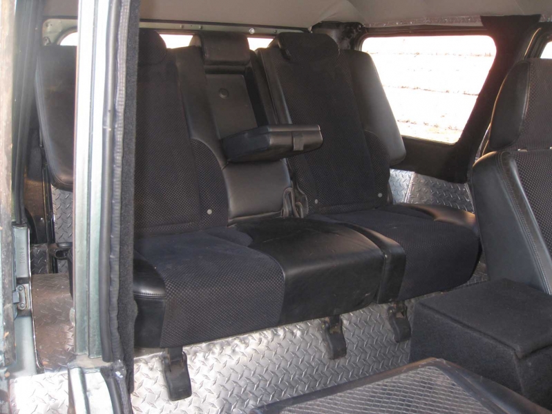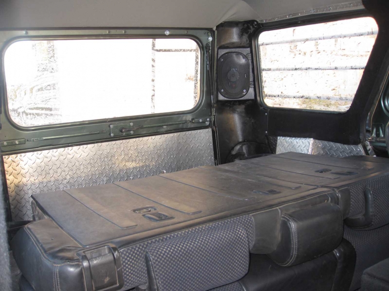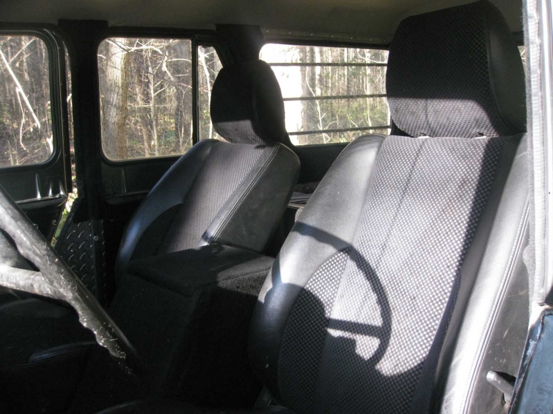 Сидения в УАЗе – дерьмо, как не крути. Поэтому установили кожаные сидения с подогревом от хундай туссан. И передние, и задние сидения идеально вписались в салон вездехода.
