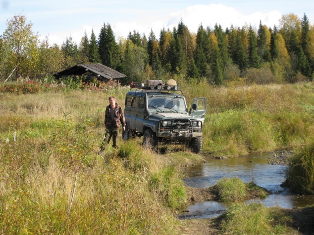 скрытие показало – ха гриб, всего лишь гриб. Вот только сломался не обычно, лопнула не ось, а тарелка, и отломками полностью заклинило полуось. Вот это и ввело в заблуждение, ни разу до этого не заклинивало, у меня мост. Запасной гриб есть и даже не одини ремонт проходит уже в приподнятом настроении - разобрать, помыть, поменять всего лишь дело техники. И снова в путь. На исходе 3 его дня из 3 отпущенных контрольных дней, преодолев эпическую кучу поперечных канав, бродик через р. Колва (всего до бампера), прибываем в д. Талово. Время к полуночи, темно, а вот и знакомый Дефендер– Друзья здесь. Все выбежали из дома, услышав работу машины. Ждут давно. Закатили пир горой на половину ночи.