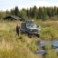 Утро следующего дня, настроение приподнятое. Быстро завтракаем и сворачиваем лагерь. Вновь урчит могучий дизель, а зубастая резина легко вгрызается в податливый грунт. Мост через Няризь – одно название, прогнил и шатается, и мы легко штурмуем реку в брод. Быстрый рывок до конца отсыпанной грунтовки и вот перед нами старая, заросшая просека, уходящая куда-то в сторону уральских гор. Дома, изучая, карты и спутниковые снимки решили, что это единственный маршрут который в принципе преодолим. Ну а дальше река и горы.