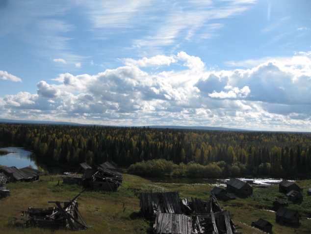 Утро следующего дня, здесь расходятся наши пути, ребята едут домой, ну а нам дальше на восток в сторону Главного Уральского Хребта. Однако торопиться уже не куда и есть время осмотреть деревеньку и находящуюся неподалеку заброшенную ИТК. Деревня со времени нашего последнего посещения немного изменилась в худшую сторону. У одних домов провалились крыши, у части других потихоньку выпиливаются стенки – на дрова. Однако деревенька не производит угнетающего впечатления, за несколькими домами приглядывают, изредка бывающие здесь рыбаки и охотники. А чарующий вид на Тулымский камень, Колва и впадающий в нее ручеек, бегущий прямо через деревню, создают веселую и живую атмосферу. Невольно начинаешь понимать отшельников и монахов, что живут в уединении в самых живописных и вместе с тем самых труднодоступных местах.