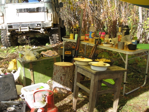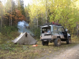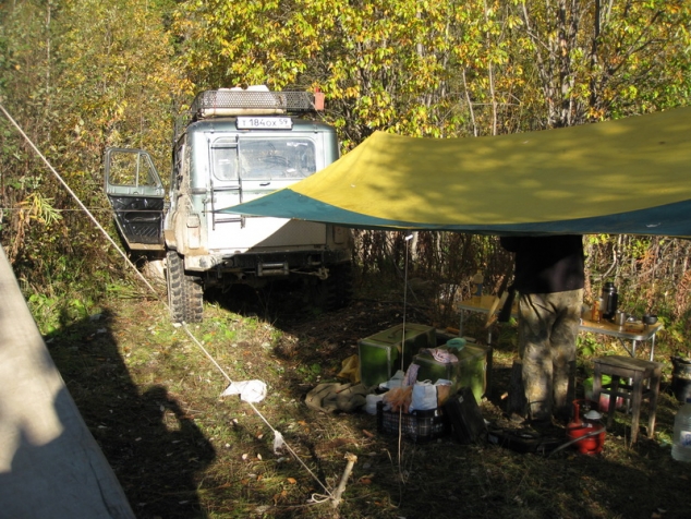 Сил ни физических, ни эмоциональных для победы над поломкой уже нет. Молча ставим лагерь, жарим мясо, пьем вискарь и очень сетуем, что не было времени для того чтобы хоть как-то протестировать автомобиль перед поездкой. С тяжелыми думами отправляемся спать, как не крути, а подвели мы друзей с продуктами и вообще, не ясно сможем ли мы продолжить путь. Утро следующего дня встретило солнышком и практически летним теплом, хотя всю ночь приходилось топить печку. Завтрак. Приступили к ревизии моста.