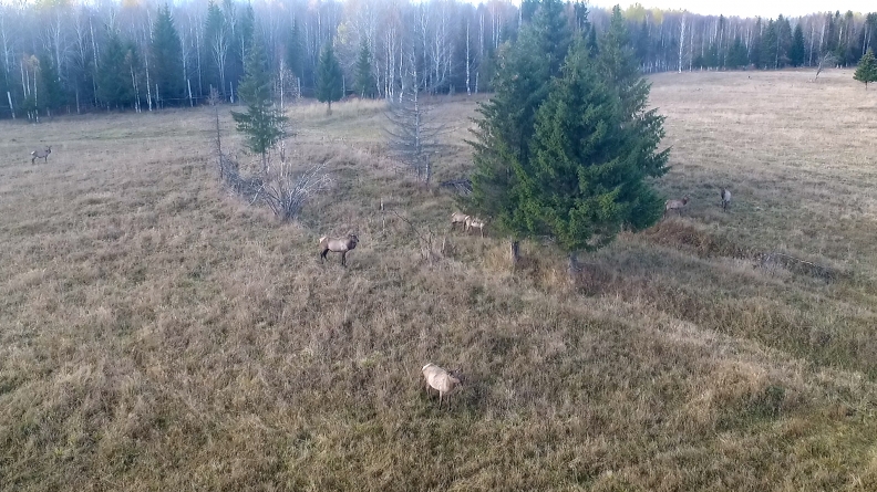 Пешком они не подпускают к себе ближе 50-60 метров. а с коптера заснять удалось. если был бы визуальный полете коптера на местности с маралами, подлетел бы ближе, хотя он мог его и боднуть.. такого краша мне еще не хватало.. :)