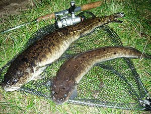 Но какие-то плюсы имеет эта ловля? Да, имеет. Весной это, если говорить о реках, единственный вид ужения, доступный любителям. В самом деле, вода не вошла еще в обычное русло, она мутна, несет разный мусор, и всякая «дневная» рыба еще не обосновалась в определенных местах, где ее можно ловить на удочку. А налим, любитель холодных вод, не выносящий дневного и даже яркого лунного света, бродит в мутной водичке и ищет, чем поживиться. Тут-то рыболов и подбрасывает ему крючки с насадкой.