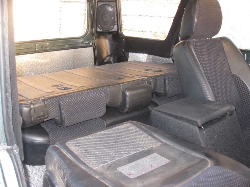 Сидения в УАЗе – дерьмо, как не крути. Поэтому установили кожаные сидения с подогревом от хундай туссан. И передние, и задние сидения идеально вписались в салон вездехода.